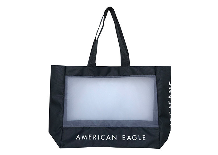 สีดํา สีขาว สองโทน Mesh 600 Denier โพลิเอสเตอร์ Tote Bag สะอาดต่อสิ่งแวดล้อม