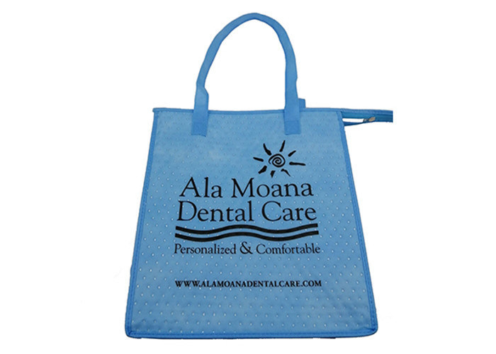 กระเป๋าเย็นอาหารกลางวันสีน้ําเงิน ที่ไม่เนื้อ กระเป๋าใหญ่ที่มีซิป
